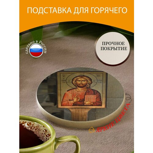 Подставка под горячее "Религия, иисус, икона" 10 см. из блого мрамора
