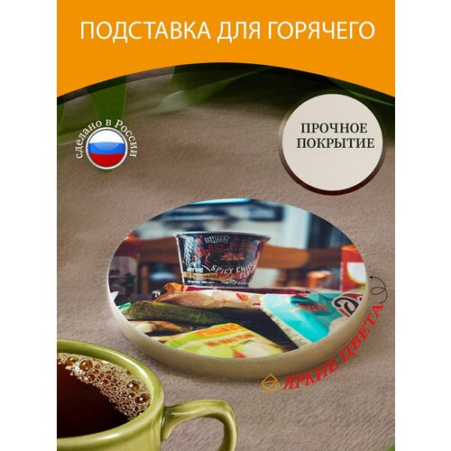 Подставка под горячее "Рамэн, рамен быстрого приготовления, лапша быстрого приготовления" 10 см. из блого мрамора