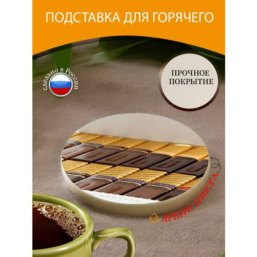 Подставка под горячее "Шоколадные конфеты, шоколад, конфеты" 10 см. из блого мрамора
