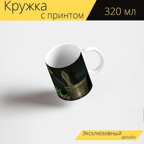 Кружка с рисунком, принтом "Сауна только, дымовая баня, saunakiulu" 320 мл.