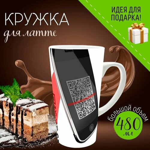 Кружка для Латте с принтом "Qr код, сканер, штрих код" 480 мл.