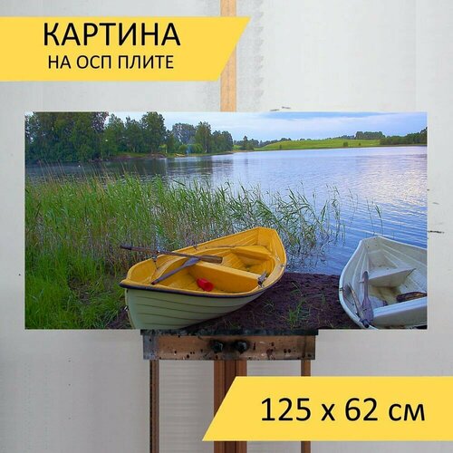 Картина на ОСП 125х62 см. "Лодки, лодка, гребная лодка" горизонтальная, для интерьера, с креплениями