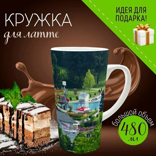 Кружка для Латте с принтом "Водная горка, бассейн для отдыха, водный парк" 480 мл.
