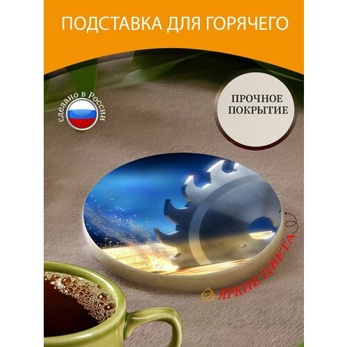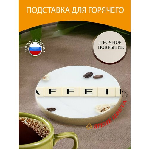 Подставка под горячее "Кофеин, кофейные зерна, жареный кофе в зернах" 10 см. из блого мрамора