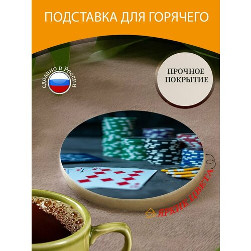 Подставка под горячее "Покер, покерные фишки, карты" 10 см. из блого мрамора