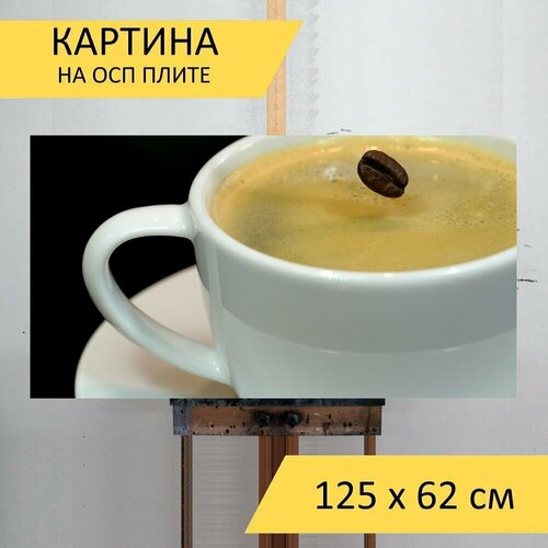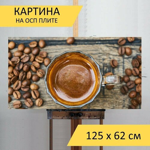 Картина на ОСП 125х62 см. "Кофе в зернах, кофе, кофеин" горизонтальная, для интерьера, с креплениями