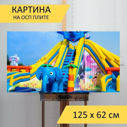 Картина на ОСП 125х62 см. "Водная горка, бассейн для отдыха, водный парк" горизонтальная, для интерьера, с креплениями