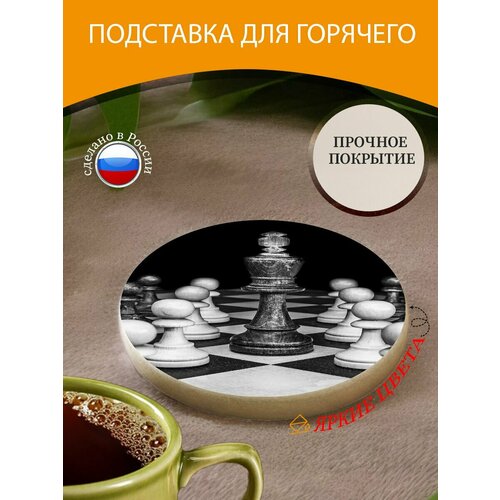 Подставка под горячее "Шахматы, король, шахматные фигуры" 10 см. из блого мрамора