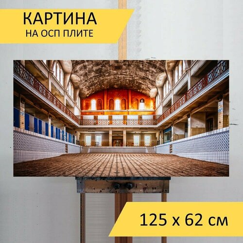 Картина на ОСП 125х62 см. "Бассейн, ванна, крытый плавательный бассейн" горизонтальная, для интерьера, с креплениями