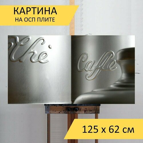 Картина на ОСП 125х62 см. "Кофе, банки, кофе в зернах" горизонтальная, для интерьера, с креплениями