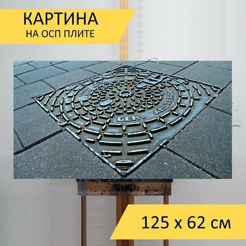 Картина на ОСП "Дорожные знаки, предупреждающий знак, ветроуказатель", 125 x 62 см