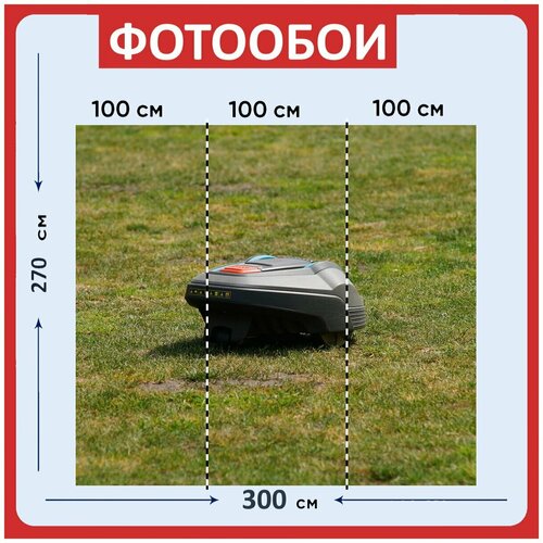Фотообои "Газонокосилка, аккумуляторная косилка, газонокосилка робот" 300x270 см. флизелиновыена стену