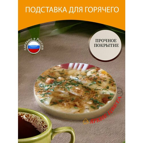 Подставка под горячее "Макароны с сыром, макаронные изделия, еда" 10 см. из блого мрамора