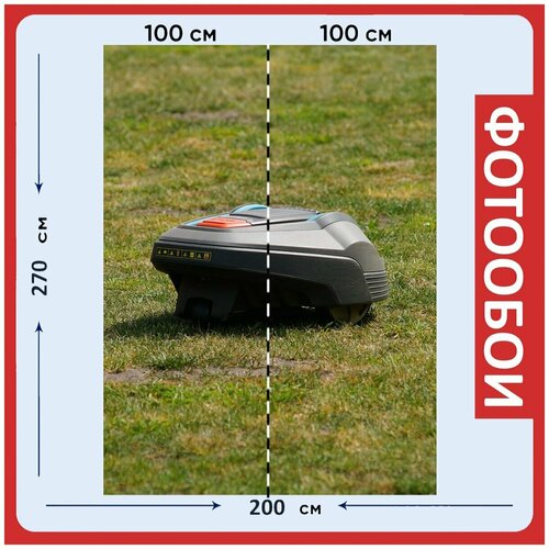 Фотообои "Газонокосилка, аккумуляторная косилка, газонокосилка робот" 200x270 см. флизелиновыена стену