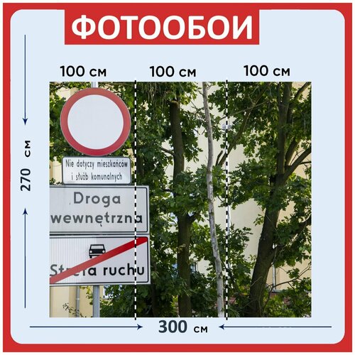 Фотообои "Дорожный знак, символ дороги, запрещающий знак" 300x270 см. флизелиновыена стену