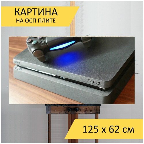 Картина "Ps, игровая приставка, для playstation " для интерьера на стену / Декор в дома, спальню, на кухню, детскую комнату, 125 см х 62 см