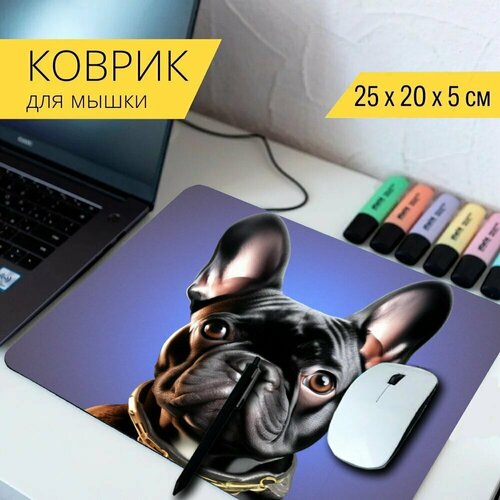 Коврик для мыши с принтом собачникам "Французский бульдог, окрас, мощный пес, короткая морда, порода собак" 25x20см.