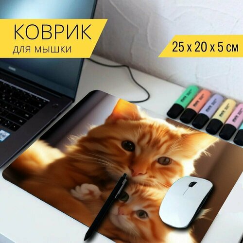 Коврик для мыши с принтом Любителям животных "Рыжая кошка с котенком , Домашнее животное, Кошка, котенок" 25x20см.