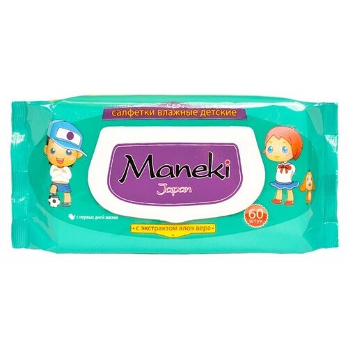 Maneki Fantasy Салфетки влажные детские с экстрактом Алоэ вера 60 шт