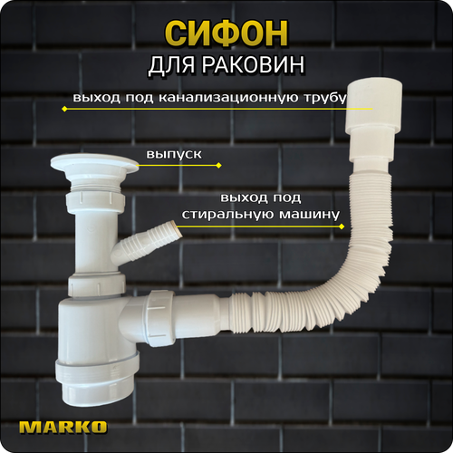 Сифон к стиральной машине Мини 1 1/2 х 40 с нержавеющим выпуском