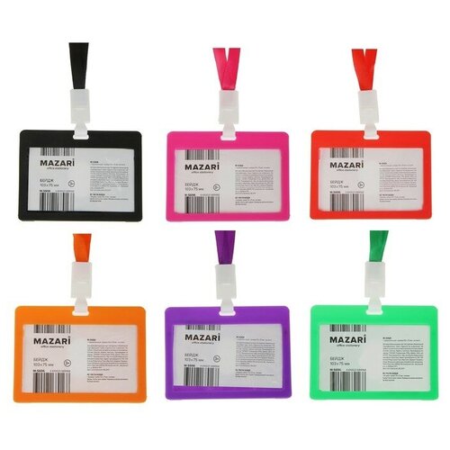 Бейдж горизонтальный Mazari Personality, 103 х 75 мм, на ленте, микс