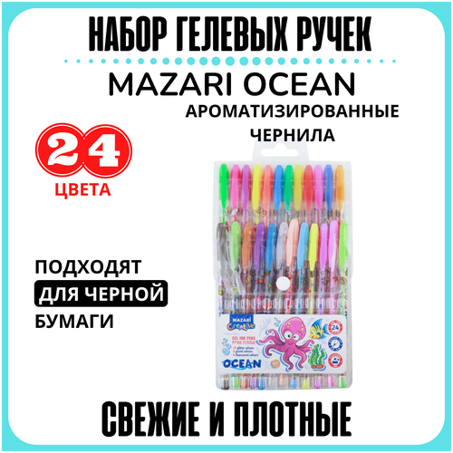 Набор гелевых ручек Mazari Ocean 24 штуки 0.5-0.8 мм, гелевая ручка, цветные ручки, рисунки гелевой ручкой, разноцветные ручки для детей