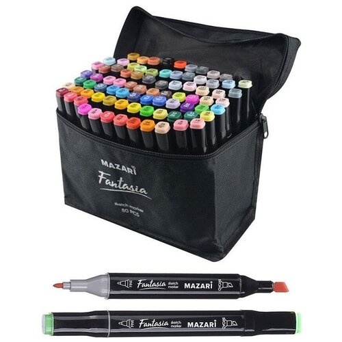 MAZARI Набор двухсторонних маркеров Fantasia, текстильный чехол, M-6073-80, черный, 1 мм, 80 шт.
