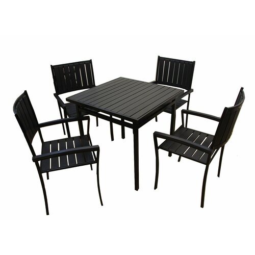 Набор мебели Гамма-800 арт. НК-1980/НК-1981 черный, (4 стула+квадр. стол 3уп.)(полимерн. доска, серый)