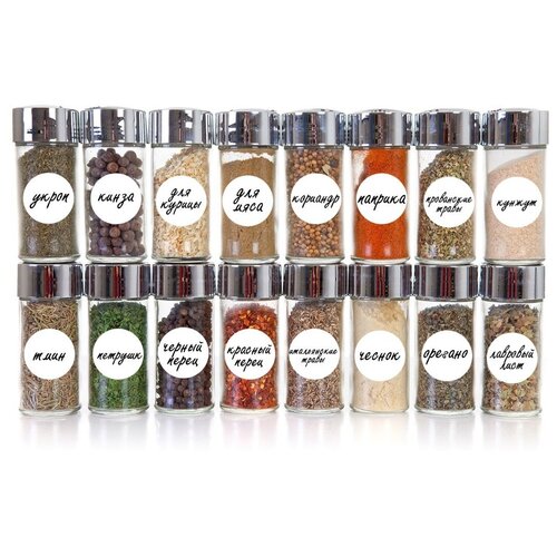 Самоклеящиеся наклейки MIOPAQ "Крупы" на банки 52шт стикеры на контейнеры для кухни, банки для специй, интерьерные наклейки белые круглые