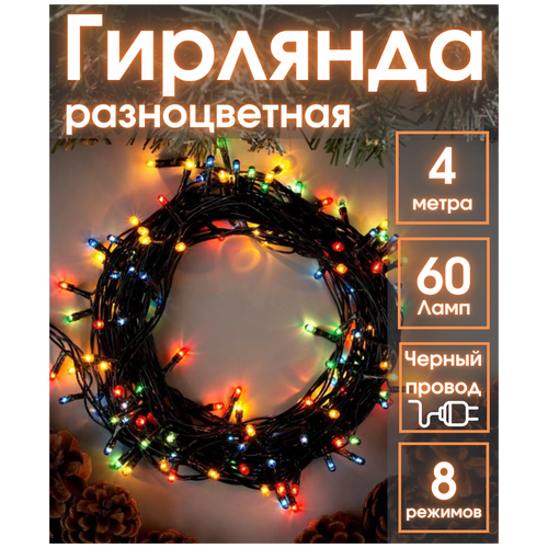 Гирлянда новогодняя 4м на елку / на окно / гирлянда уличная и домашняя на батарейках ( провод ) / герлянда светодиодная / гирлянда штора