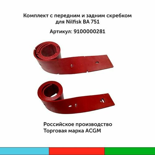9100000281 Комплект с передним и задним скребком для Nilfisk BA 751 (2 шт). Запчасти для поломоечных машин.