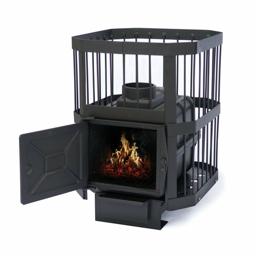 Печь банная чугунная "Сибирь-15". Чугунная дверца с ВТК (Сетка)