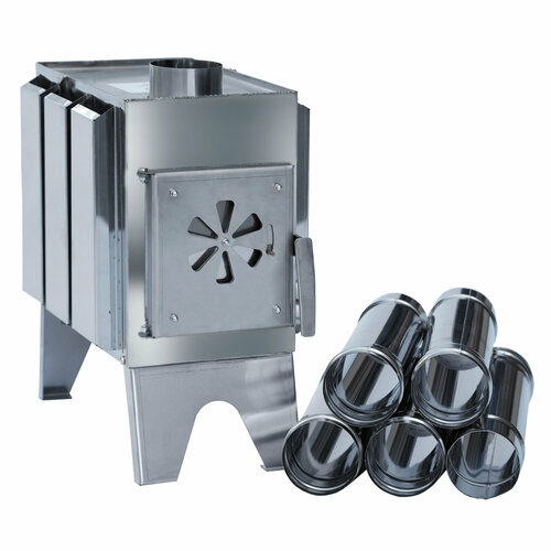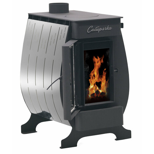 Печь отопительная с плитой "сибирячка"-6 кожух нерж. сталь, дверца со стеклом