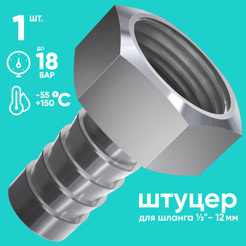 Штуцер для шланга ONKRON FSHS12Х1-2 внутренняя резьба 1/2", никелированная латунь