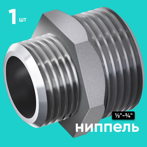 Ниппель переходной ONKRON GJSM1-2X3-4 резьбовой, 1/2" - 3/4", никелированная латунь