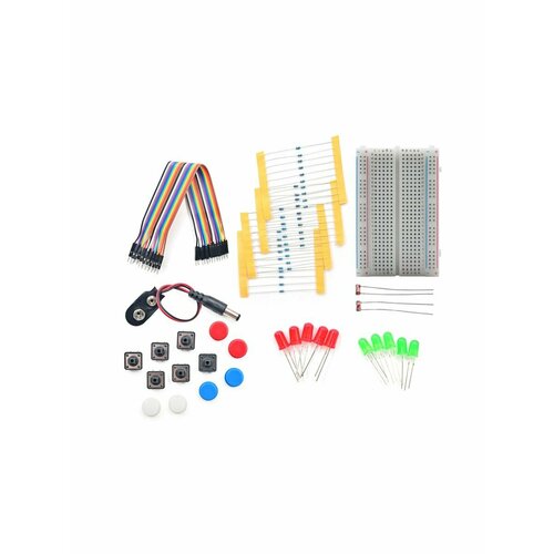 Базовый набор комплектующих и компонентов для Arduino (макетная плата, кнопки, провода, светодиоды)