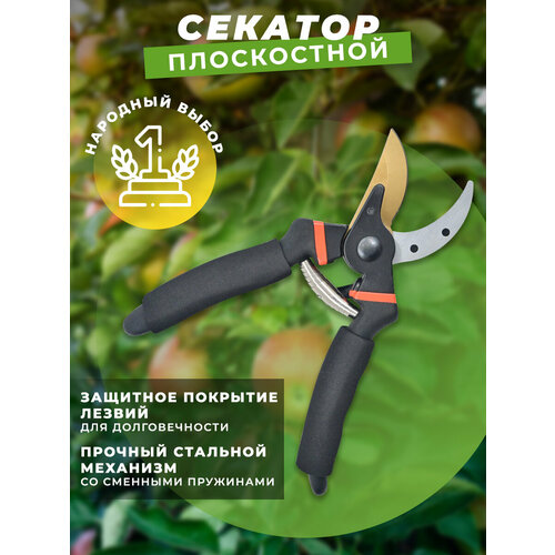 Секатор плоскостной срез до 18 мм, обрезиненные рукоятки, секатор садовый, секатор пружинный для растений и цветов / сучкорез