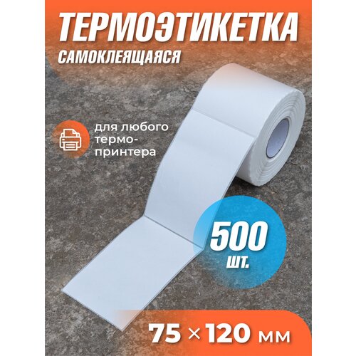 Самоклеящиеся термоэтикетки 75х120 мм 500 штук в рулоне для озон, поставок, на склад для термопринтера