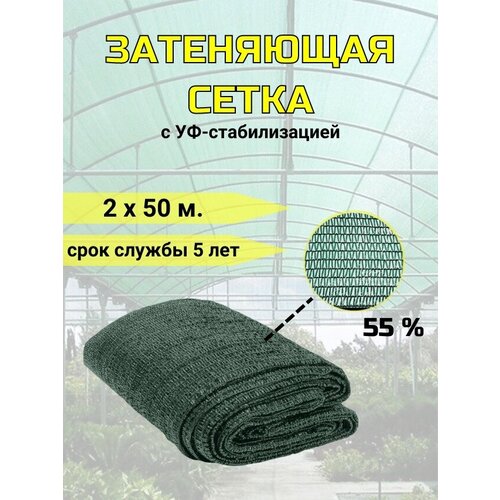 Сетка затеняющая 55% для теплиц, навесов, заборов, размер 2х50 м, затенение 55%