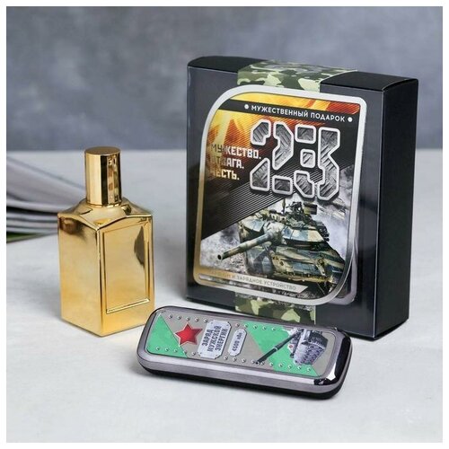 Набор «С праздником сильных»: парфюм (100 мл), рюмки (2 шт)