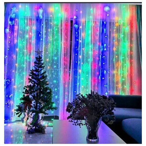 Гирлянда штора/ гирлянда занавес / сведодиодная гирлянда/ гирлянда на окно 180 * 180 см. 1.8м.*1.8м. Цветная.