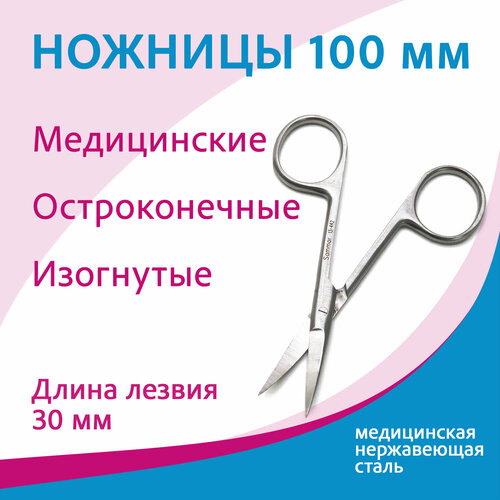 Ножницы медицинские тупоконечные вертикально изогнутые, 100 мм 13-442 (н-22)