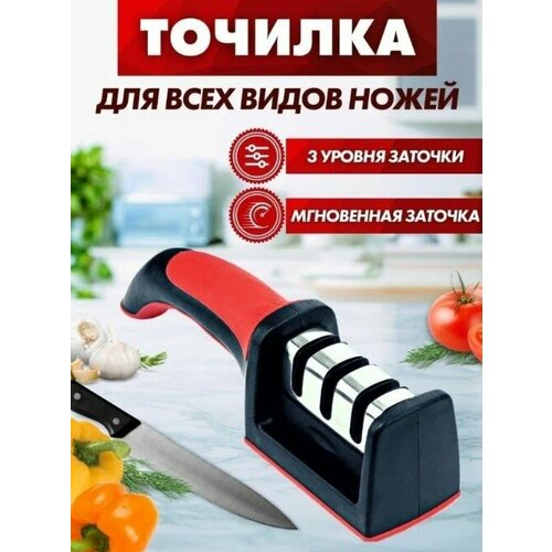 Точилка для ножей с 3-х этапной системой заточки / Ножеточка для всех типов ножей / Точило для ножей