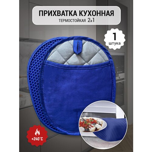 Прихватка для горячего силиконовая кухонная 2 в 1 термостойкая синяя, 1 шт