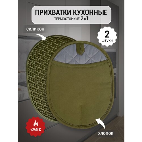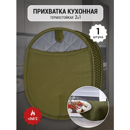 Прихватка для горячего силиконовая кухонная 2 в 1 термостойкая зеленая, 1 шт