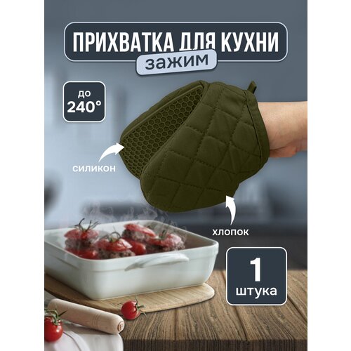 Прихватка для горячего силиконовая термостойкая рукавица кухонная, 1 шт
