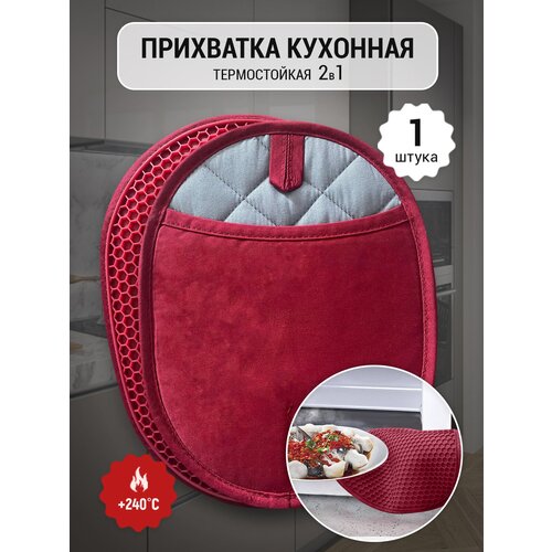 Прихватка для горячего силиконовая кухонная 2 в 1 термостойкая красная, 1 шт