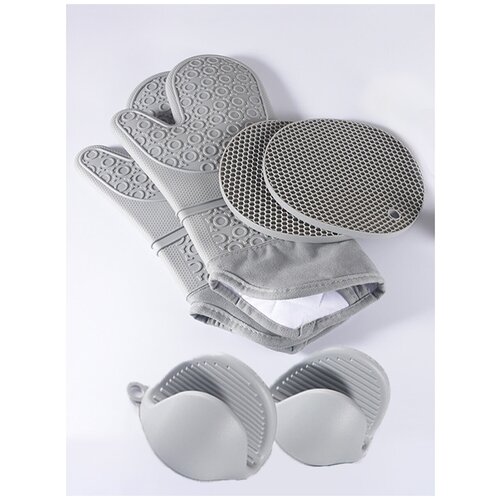 Силиконовые прихватки для кухни набор из 6 предметов термостойкие серые прихватка силиконовая рукавица для горячего мангала и дачи в подарок