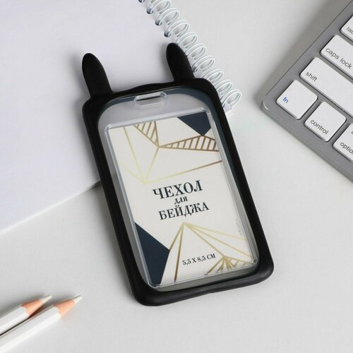 Чехол для бейджа, проездного, карты черный с ушками