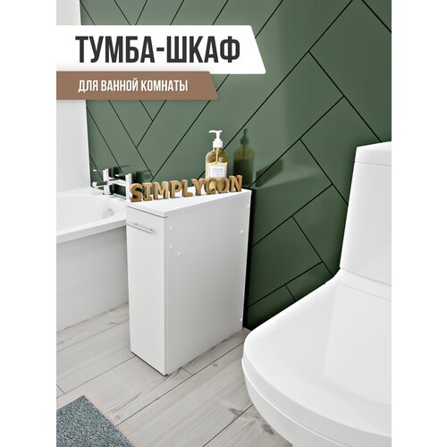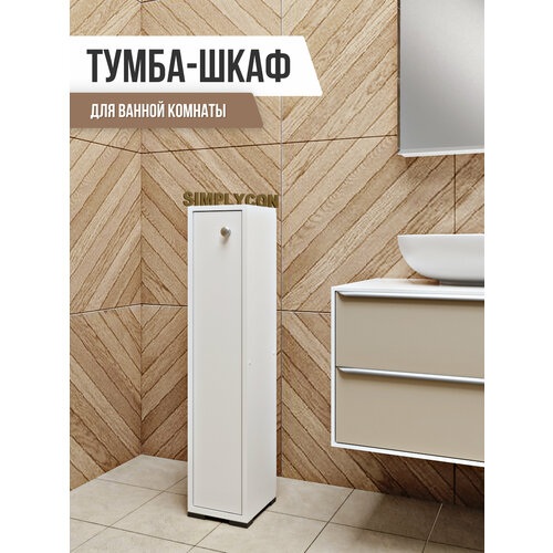 Шкаф узкий в ванную, шкаф пенал напольный, тумба на колесиках, тумбочка с выдвижным ящиком, Simplycon, цвет Белый